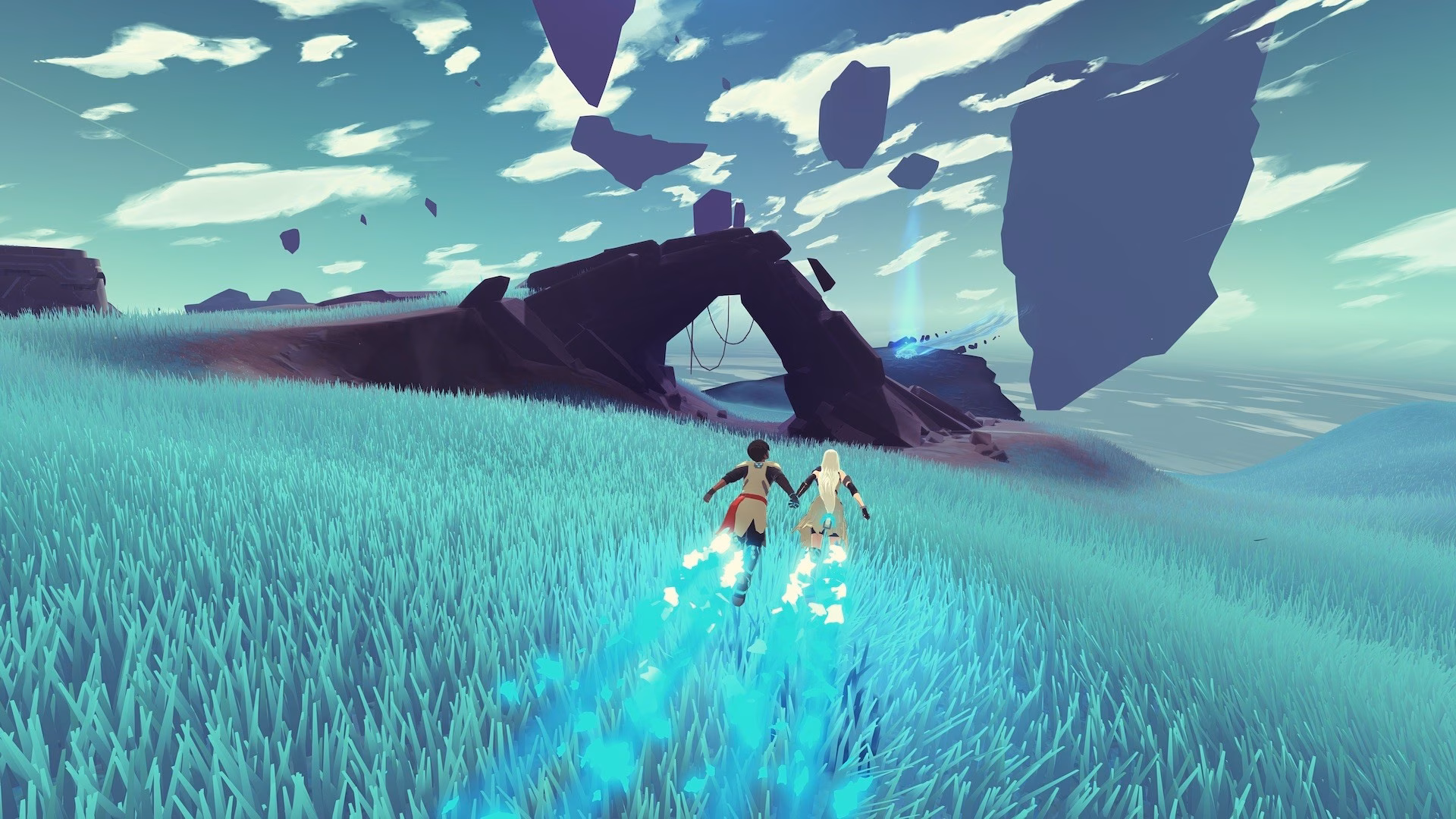 I would argue that Haven is far more of a cozier, calming adventure and romantic couple story than it is the RPG survival game it is often described as, perhaps by even the developers themselves in an attempt to reach a wider audience. The core of the gameplay is navigating a planet full of islets connected by “flow bridges,” an energy phenomenon that also powers your impressive gliders, allowing you to seamlessly travel the beautiful landscape, fight corrupted enemies, purify the land, and find resources for crafting and cooking.