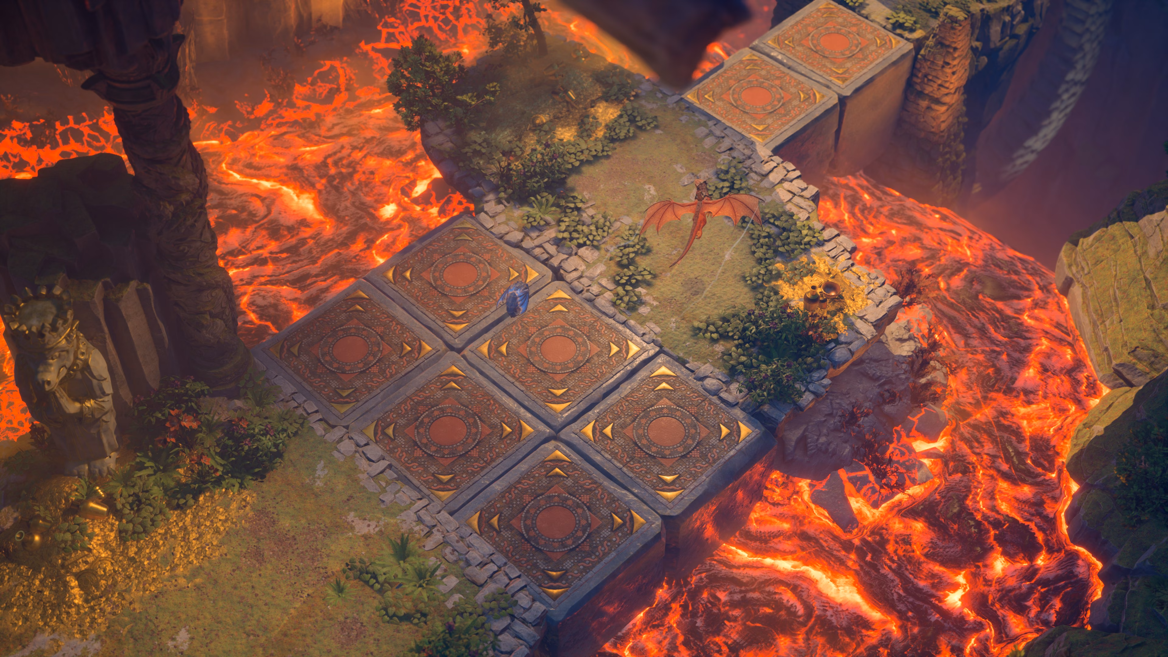 The mechanical puzzles are stunningly diverse. In one section, Zoe transforms into a Groot-like being to manipulate deadly flowers and force them to recede, while Mio shapeshifts into an amphibian creature to drag them both across piranha-infested waters. Later, Mio and Zoe find themselves on opposite sides of a room blocked by color-coded force fields, requiring them to shoot grenades at boxes on a conveyor belt and time their blasts perfectly to break through barriers. In another puzzle, Mio uses her ape transformation to push an ice cube while Zoe lifts tiles on the grid in her tree form, creating barriers that guide the cube to its destination.