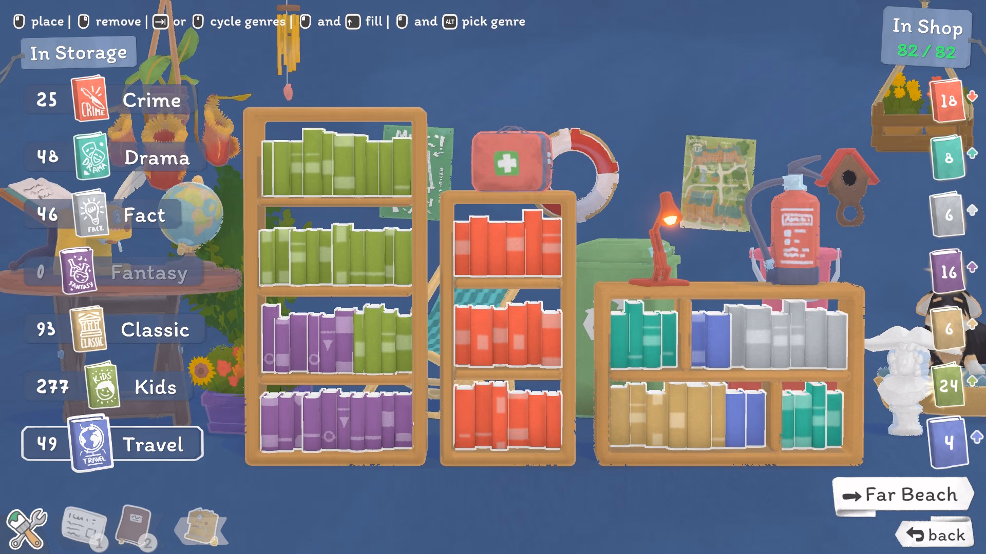 You begin each day by managing your inventory—sourcing books from various suppliers and then choosing which genres of books you place on your limited bookshelf space. Once your shop is open, gameplay shifts to a passive management style punctuated by direct customer interactions.